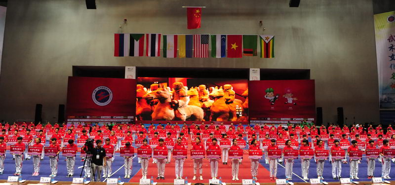 5月26日,2800余名中外武术选手26日齐聚第二届中国徐州国际武术大赛,在长拳、南拳、太极拳、刀、剑、棍等各类项目中交流、切磋。  开幕式表演