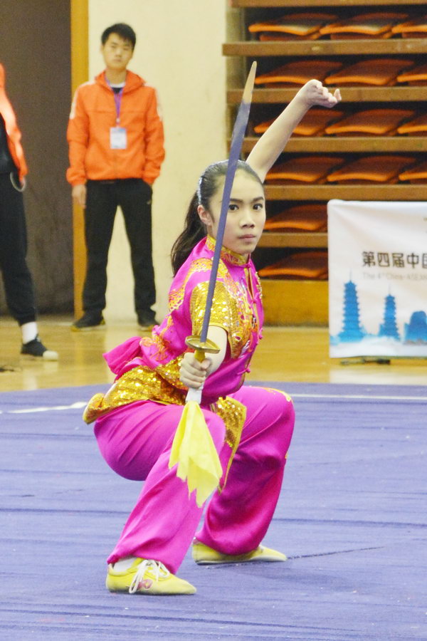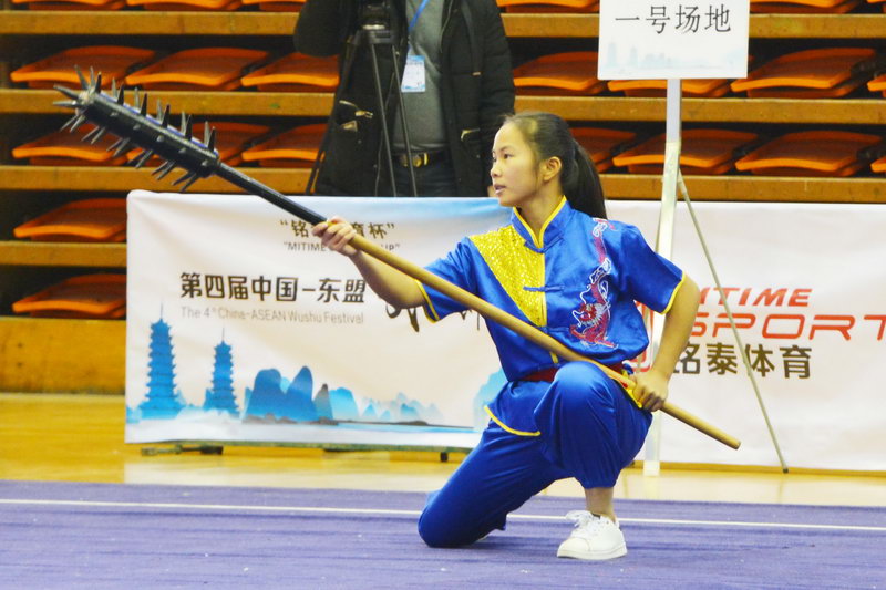 2017年11月26日至28日,“铭泰体育杯”第四届中国-东盟武术节在广西桂林成功举行。来自13个国家和地区79支代表队的600多名运动员参加了角逐,赛事规模和参赛人数又创历史新高。  中国选手陈桂真在演练太极拳
